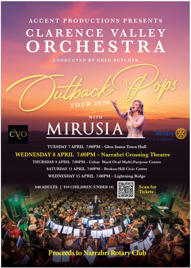 Prepare yourself for a sweeping musical journey right here in Narrabri! We invite you to an unforgettable evening featuring a full orchestra, accompanied by Mirusia Louwerse.
