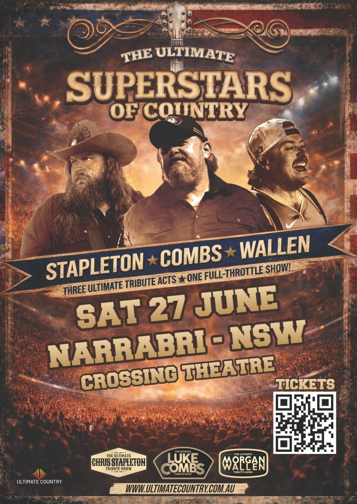 The Ultimate Superstars of Country is bringing the music of Luke Combs, Morgan Wallen & Chris Stapleton to The Crossing Theatre.